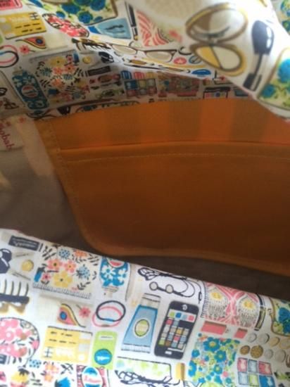 入れ口は巾着タイプになっていますが現在は完売したリバティの生地を使用しています。